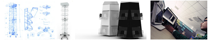 Un studio de création intégré, Un outil informatique performant Nos graphistes imaginent, visualisent les solutions esthétiques et fonctionnelles les plus économiques qui vous seront proposées. Les dessinateurs industriels mettent en forme votre choix au travers d’un plan de fabrication. Vos exigences amènent souvent nos designers à enrichir leur palette créative de nouveaux matériaux. Votre chef de projet a pour mission de sourcer les matériaux et d’auditer les nouveaux fournisseurs.